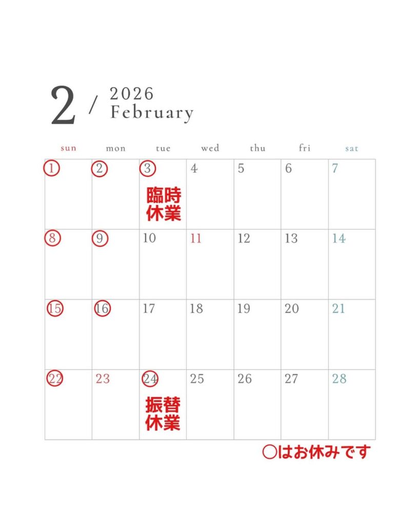 月曜が祝日の場合営業は翌日振替休業